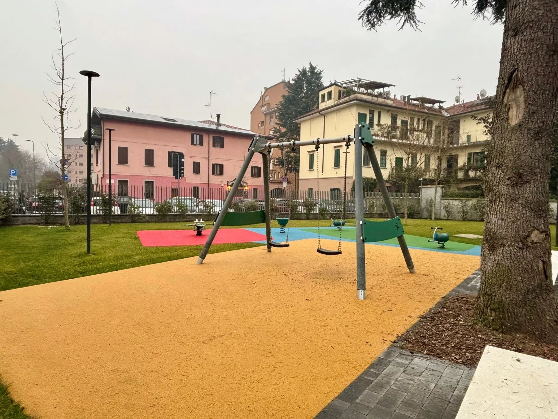 Il condominio è dotato di un grande giardino piantumato con area giochi per i bambini e doppia uscita , sia sulla via Ippodromo che sulla via Trenno verso la MM Lampugnano.