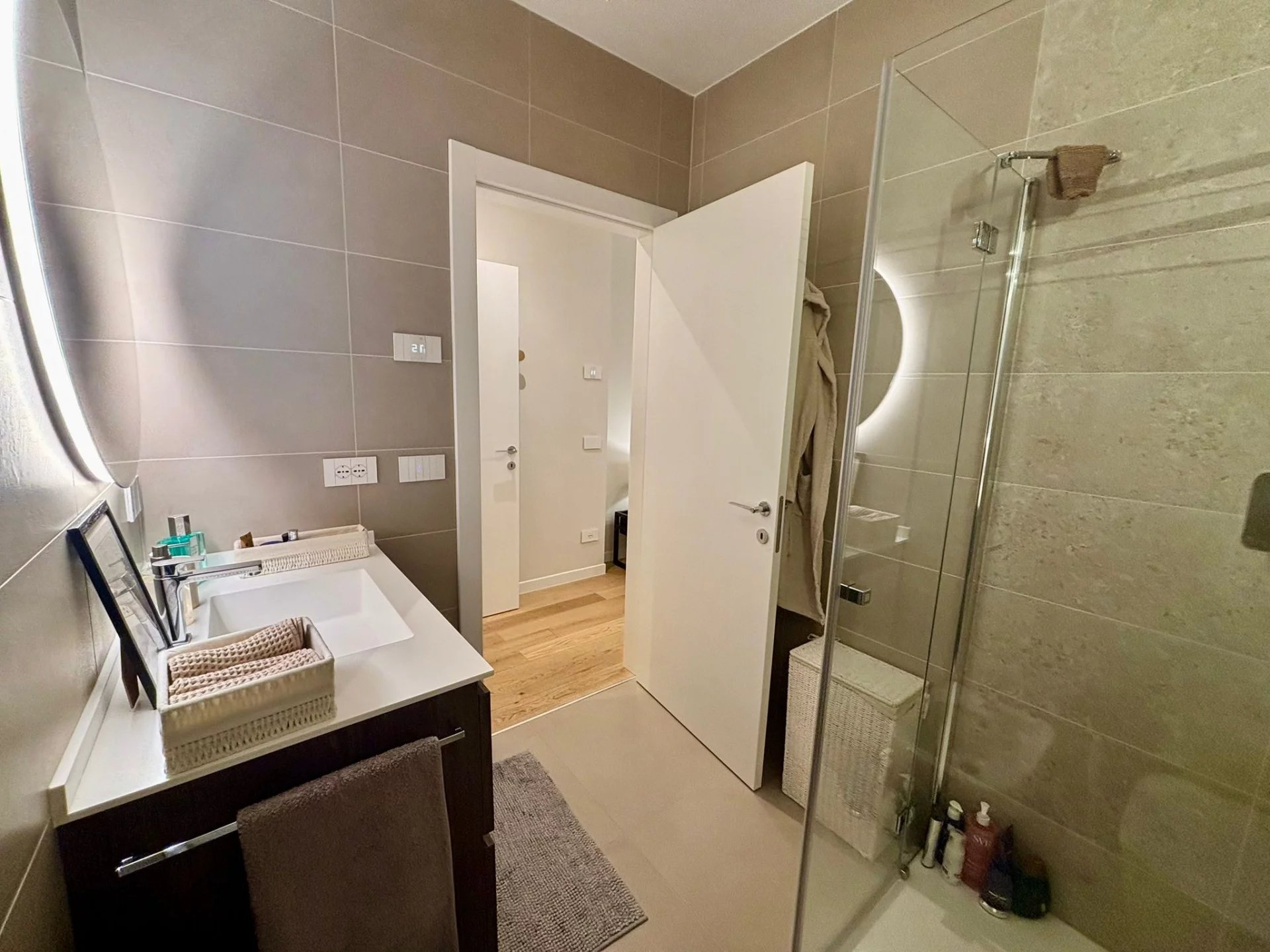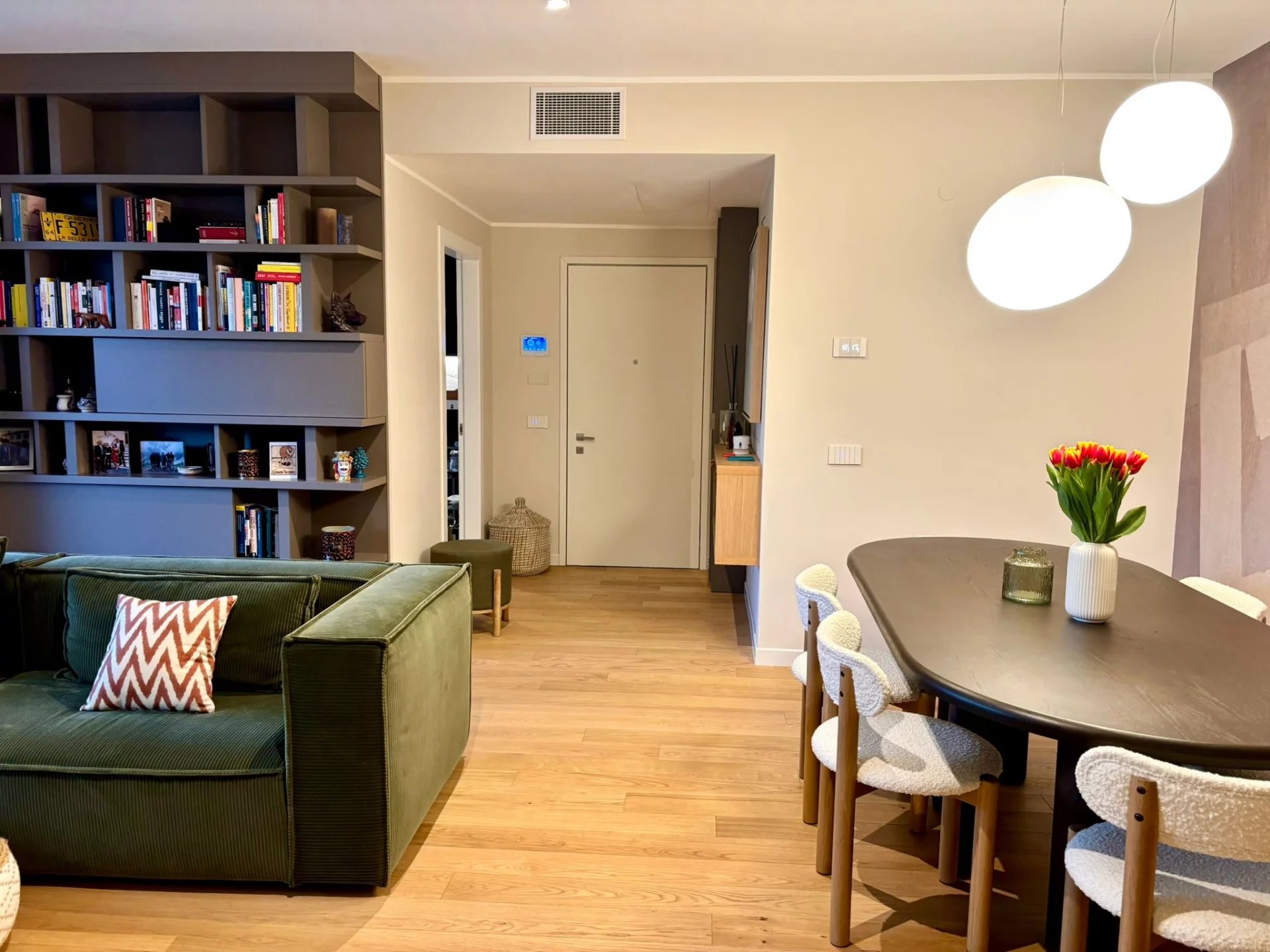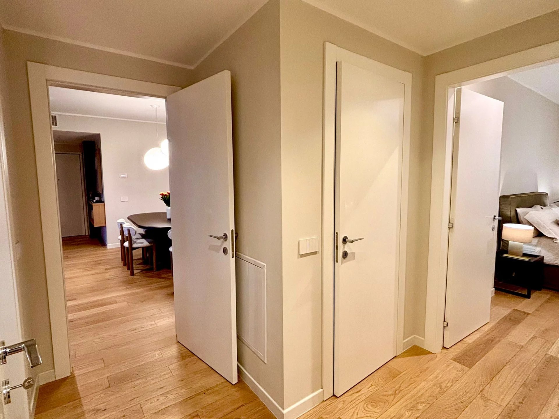 Gestione intero appartamento tramite domotica con pannello di controllo posto vicino alla porta di ingresso, anche gestibile da remoto.