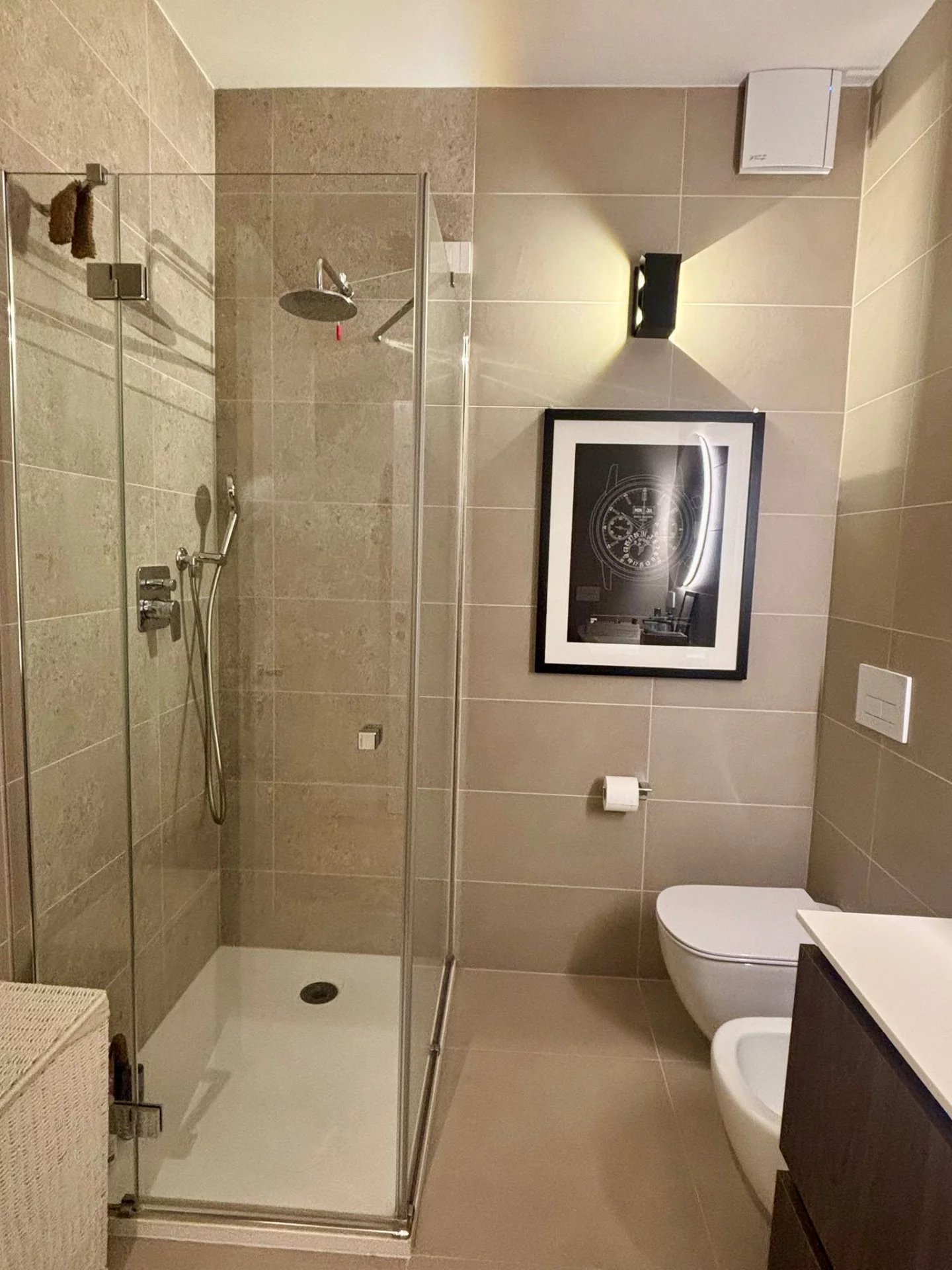 Impianto riscaldamento di ultima generazione con pannelli radianti a pavimento. Impianto raffrescamento aria condizionata canalizzata con sportelli per pulizia filtri e ispezioni. Sistema di ricircolo aria - aerazione meccanica HELTY, in ogni camera.