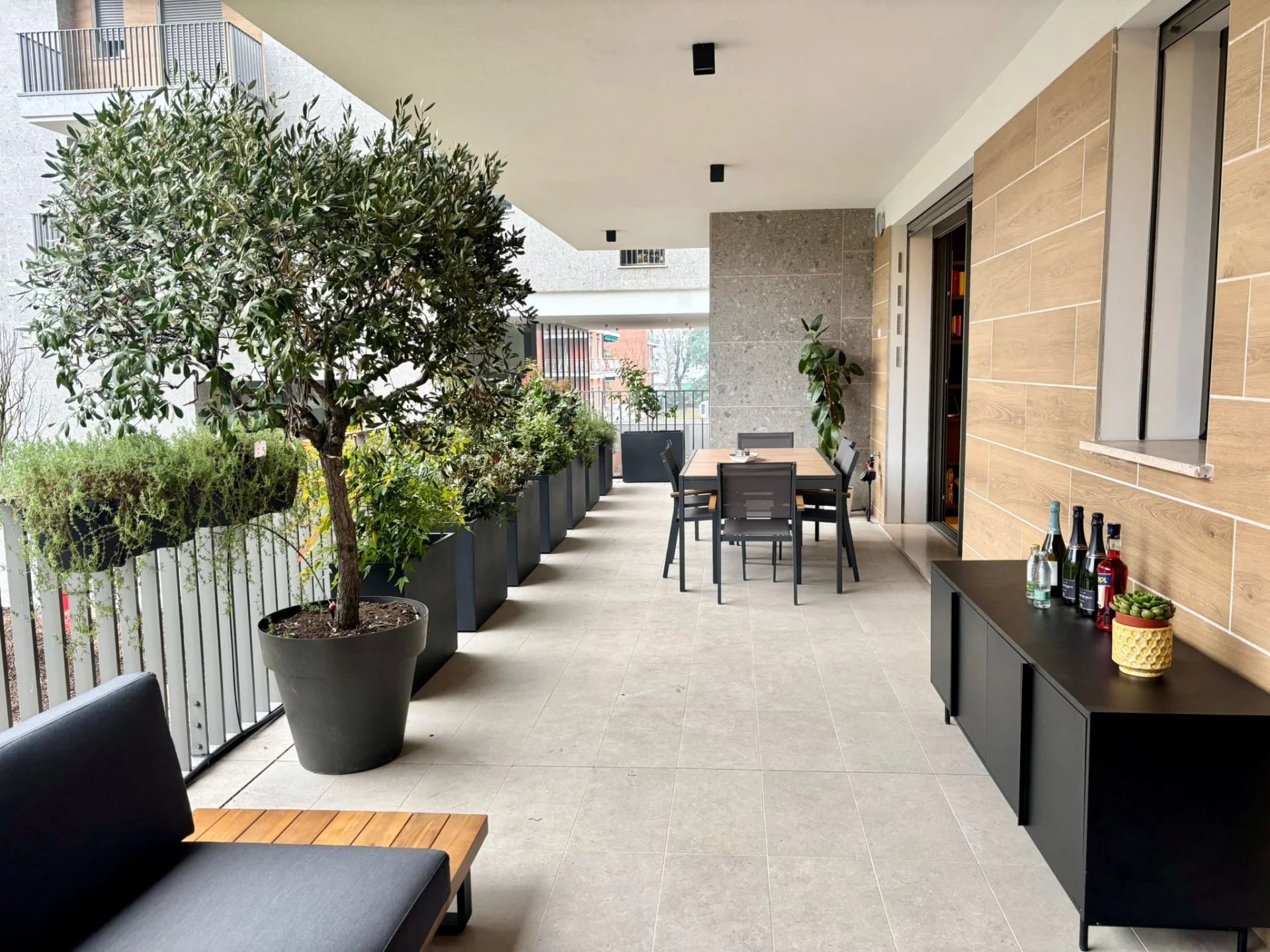 Terrazzo arredato con piante, dotato di impianto di irrigazione (extra capitolato).